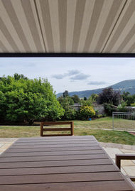 The finished awning perfectly covers the patio, providing a stylish and functional space to relax, entertain, or enjoy the stunning views across the Brecon Beacons. It extends the outdoor living area while blending seamlessly with the modern design of the home.